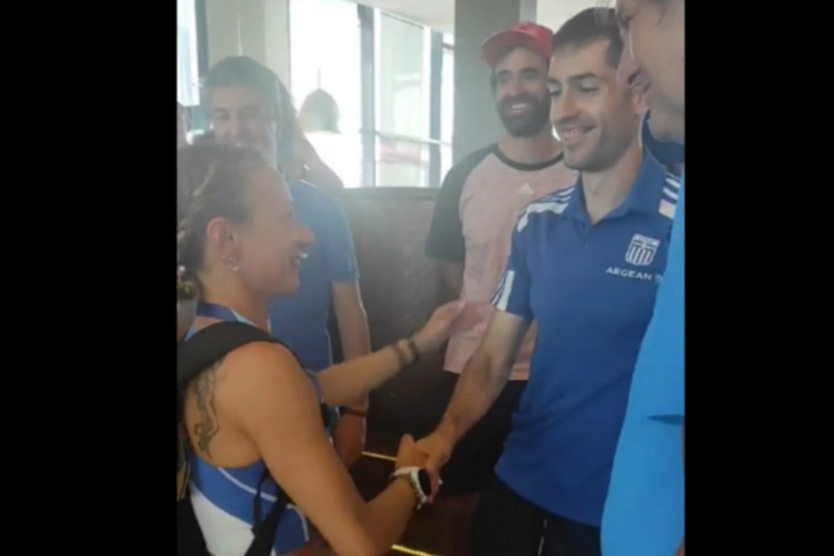 Όλα τα μέλη ήταν εκεί για να την υποδεχτούν και να την αποθεώσουν για τη μεγάλη επιτυχία της ενώ δεν έλειψε και το γνωστό “όλε”.