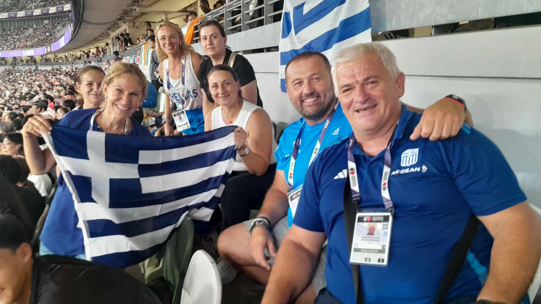Ολόκληρη την εβδομάδα η πρωταθλήτρια Ευρώπης του 2022 προετοιμάστηκε, αλλά συχνά πυκνά έκανε την εμφάνισή της και στην εξέδρες του Ολυμπιακού Σταδίου για να στηρίξει μαζί με την μητέρα της Γιώτα και άλλα συγγενικά της πρόσωπα τους άλλους Έλληνες αθλητές, όπως φαίνεται στην φωτογραφία του SPORT24 από τον τελικό του Μίλτου Τεντογλου την περασμένη Τετάρτη.