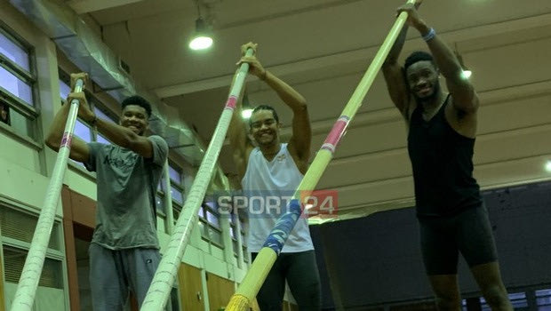 Οι Γιάννης και Θανάσης Αντετοκούνμπο επισκέφτηκαν τον φίλο τους Εμμανουήλ Καραλή στο προπονητήριο του ΟΑΚΑ και πήραν μία πρώτη γεύση από το επί κοντώ. (Photos)