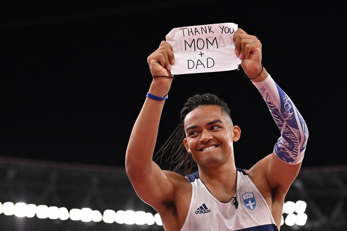 Πάνω απ’ όλα ο 21χρονος Έλληνας πρωταθλητής το απόλαυσε. Μέχρι τέλους. Σε τέτοιο βαθμό που μετά από κάθε άλμα χαμογελούσε πλατιά. Είτε είχε υπερβεί το ύψος είτε είχε αποτύχει. Όταν ολοκλήρωσε τον μεγάλο αγώνα του και ήξερε ότι δεν έχει άλλη προσπάθεια έκανε κάτι απροσδόκητο. Ξεκόλλησε το χαρτάκι με το όνομά του και έδειξε προς την κάμερα το μήνυμα που είχε ήδη γράψει. Ήθελε με αυτόν τον τρόπο να ευχαριστήσει τους δύο γονείς του για όσα έκαναν γι’ αυτόν μέχρι να φτάσει σε αυτό το σημείο. Ήταν σίγουρα μια αξέχαστη στιγμή από τις πιο όμορφες και συγκινητικές στο Τόκιο.