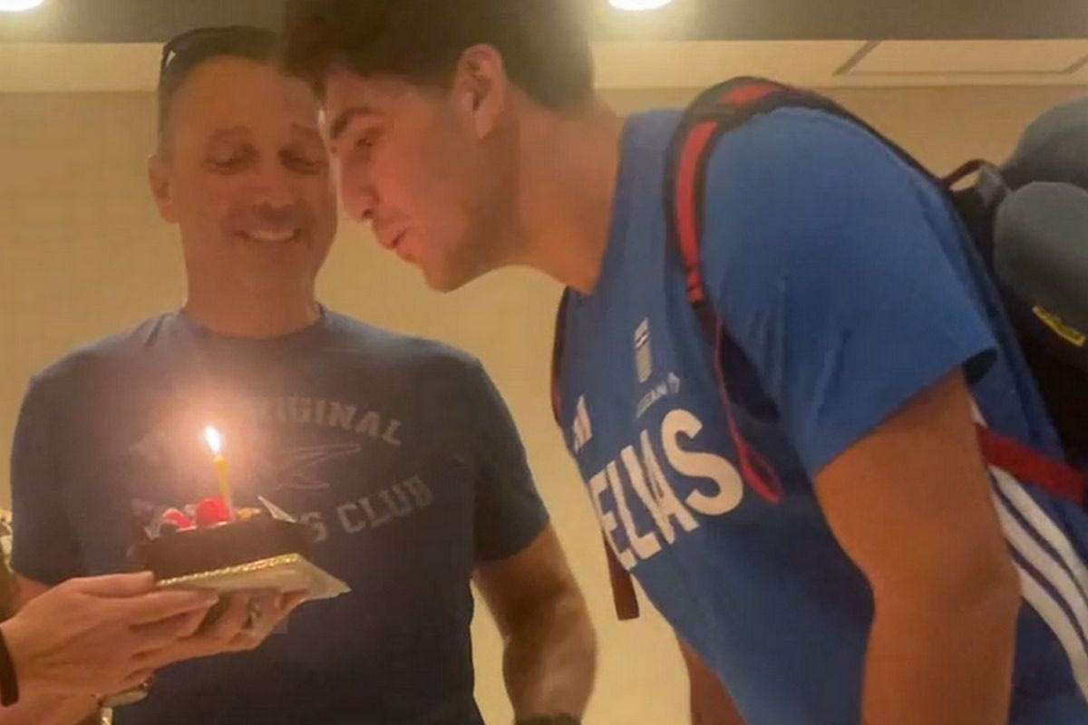 Πιο συγκεκριμένα, οι συναθλητές του, έσβησαν τούρτα στον νεαρό δυσκοβόλο, με αφορμή τα γενέθλιά του, την Κυριακή (21/9).