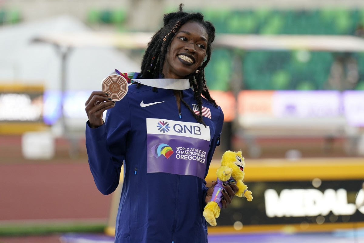 Η Αμερικανίδα μπήκε στο “Hayward Field” με την αυτοπεποίθηση που συνηθίζουν να έχουν οι αθλητές του Πομάσκι. Έραψε κοχύλια στα ράστα της και αμέσως έθεσε υποψηφιότητα για ένα μετάλλιο. Ήξερε, όπως και όλες οι αθλήτριες που συμμετείχαν στο αγώνισμα, ότι το χρυσό μετάλλιο είχε “κλειδώσει” η ανίκητη Ρόχας και το παραδέχθηκε και στις δηλώσεις της μετά τον τελικό.