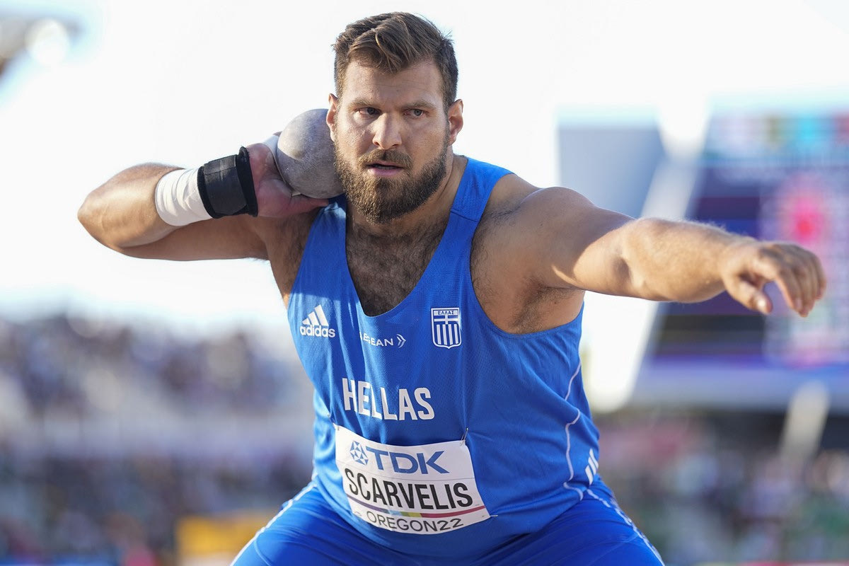 Ο Σκαρβέλης στην πρώτη του βολή έστειλε την σφαίρα του στα 19,55μ., η οποία ήταν και η καλύτερη προσπάθειά του αφού στη δεύτερη είχε 19,01μ., ενώ η τρίτη ήταν άκυρη.