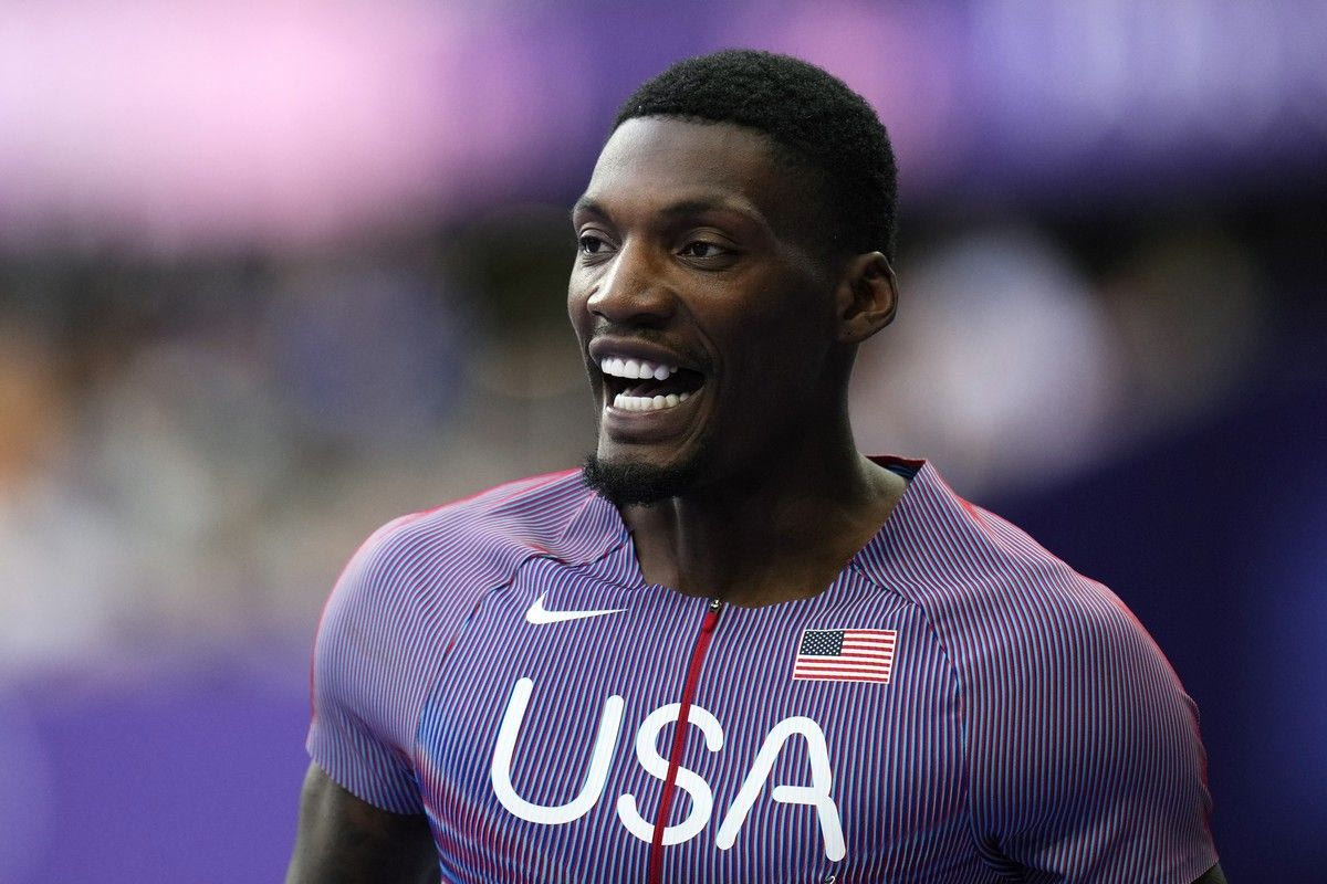 Fred Kerley, of the United States, looks on after competing in a heat in the men's 100-meter semifinals at the 2024 Summer Olympics, Sunday, Aug. 4, 2024, in Saint-Denis, France. (AP Photo/Petr David Josek) AP Photo/Petr David Josek