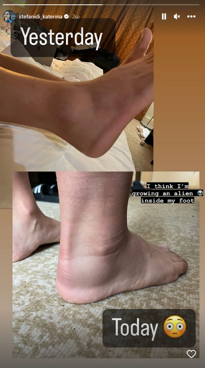 Η Κατερίνα Στεφανίδη ανέβασε μια φωτογραφία που δείχνει το μέγεθος του πρηξίματος στο δεξί αστράγαλό της και τη σχολίασε χιουμοριστικά.