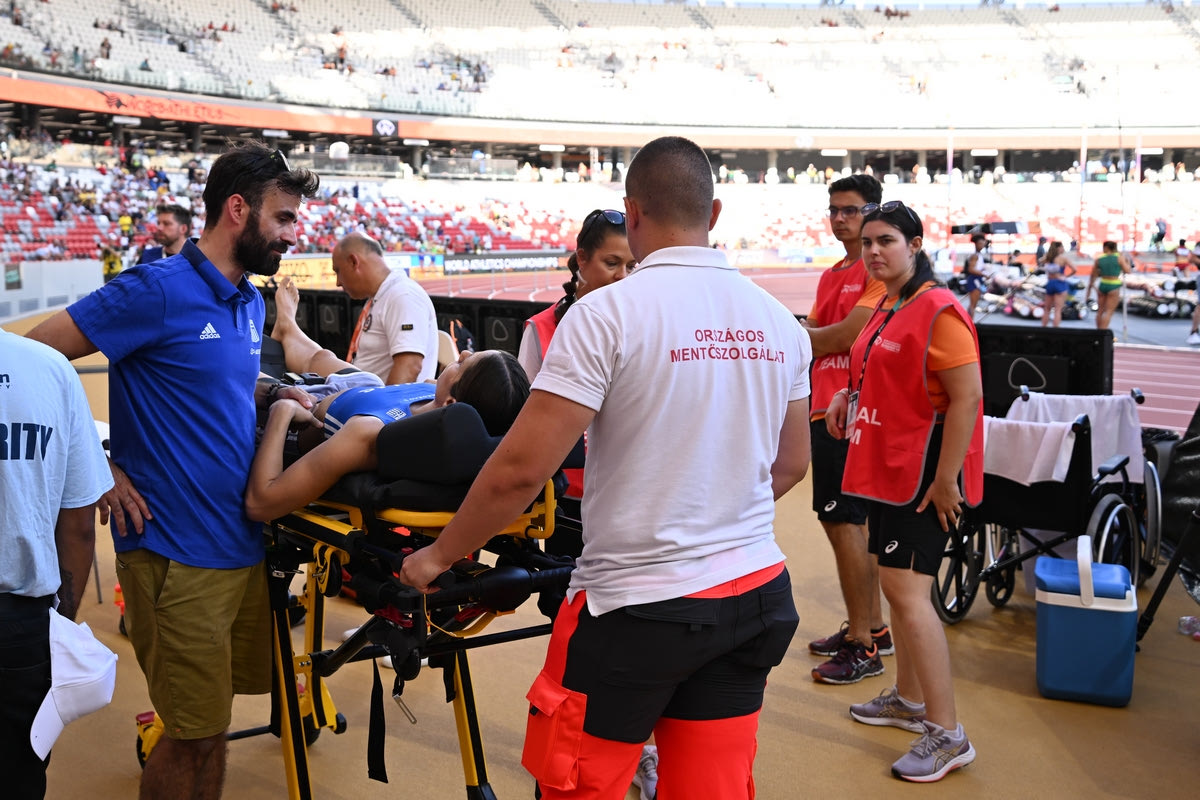 Η σπουδαία Ελληνίδα αθλήτρια τραυματίστηκε στο δεξί αστράγαλο με αποτέλεσμα να μεταφερθεί στο ιατρείο του σταδίου για να εκτιμηθεί η κατάστασή της.