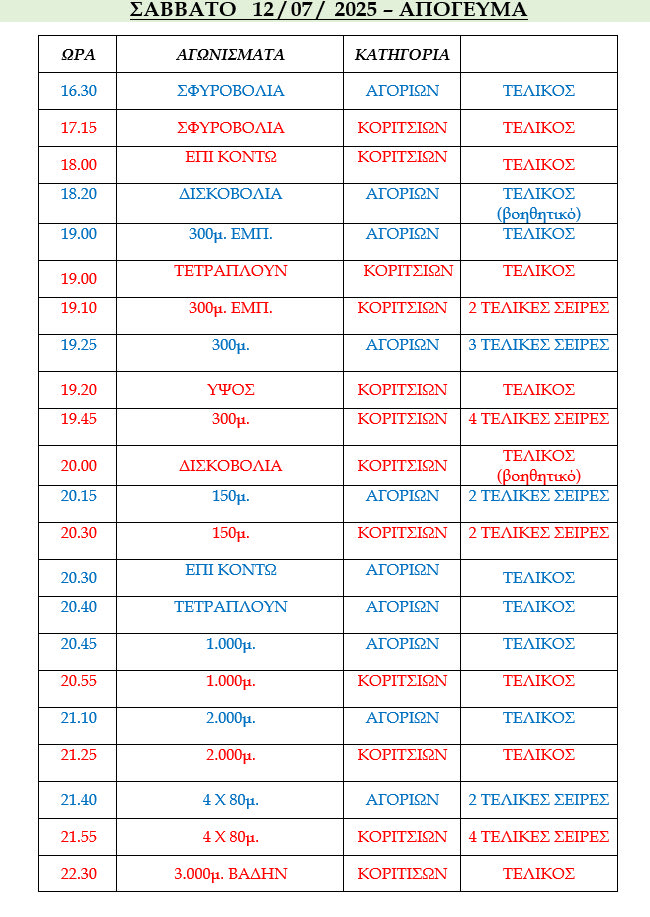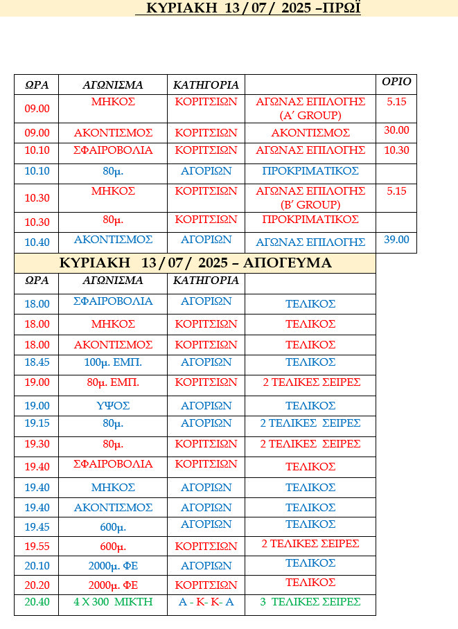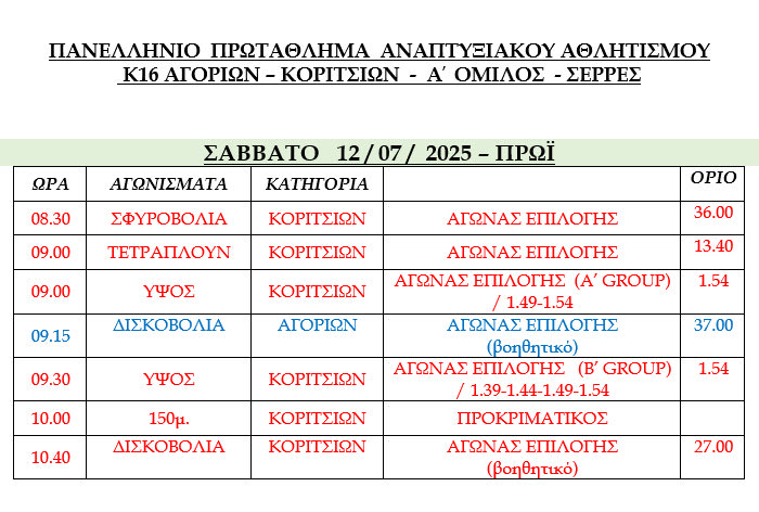 Συμπληρωματικά της προκήρυξης στον όμιλο της Χαλκίδας θα γίνει προκριματικός στη σφαιροβολία κοριτσιών (όριο 11,00μ.) και τη δισκοβολία ανδρών (όριο 40,00μ.).