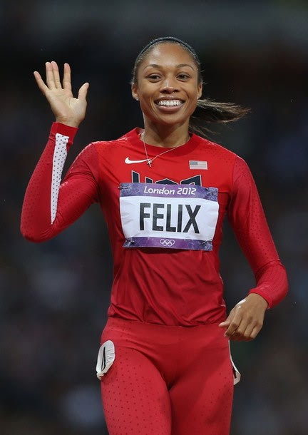 LONDON, ENGLAND - AUGUST 07: Allyson Felix of the United States competes in the Women's 200m Semifinals on Day 11 of the London 2012 Olympic Games at Olympic Stadium on August 7, 2012 in London, England. (Photo by Streeter Lecka/Getty Images)