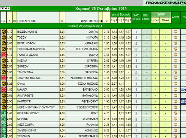 Διαβάστε συνοπτικά στατιστικά, ειδήσεις και εκτιμήσεις για όλα τα παιχνίδια του κουπονιού της Κυριακής (26/10). Betblog.gr