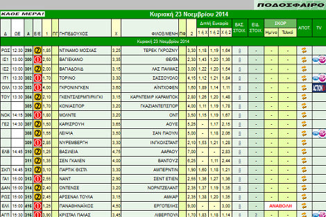 Διαβάστε συνοπτικά στατιστικά, ειδήσεις και εκτιμήσεις για όλα τα παιχνίδια του κουπονιού της Κυριακής (23/11). Πηγή: Betblog.gr