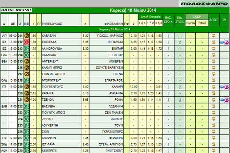 Διαβάστε συνοπτικά στατιστικά, ειδήσεις και εκτιμήσεις για όλα τα παιχνίδια του κουπονιού της Κυριακής (18/5). Πηγή: Betblog.gr.