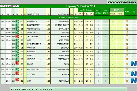 Διαβάστε συνοπτικά στατιστικά, ειδήσεις και εκτιμήσεις για όλα τα παιχνίδια του κουπονιού της Κυριακής(22/6)