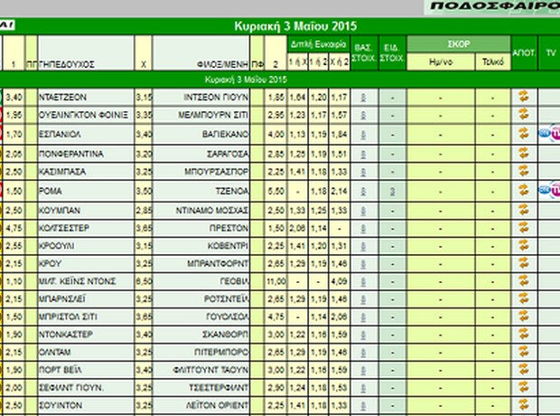 Διαβάστε συνοπτικά στατιστικά, ειδήσεις και εκτιμήσεις για όλα τα παιχνίδια του κουπονιού της Κυριακής (3/5). Πηγή: Betblog.gr.