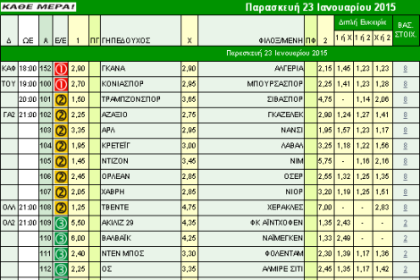 Διαβάστε συνοπτικά στατιστικά, ειδήσεις και εκτιμήσεις για όλα τα παιχνίδια του κουπονιού της Παρασκευής (23/1). Πηγή: Betblog.gr