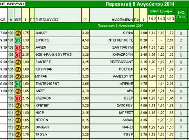 Διαβάστε συνοπτικά στατιστικά, ειδήσεις και εκτιμήσεις για όλα τα παιχνίδια του κουπονιού της Παρασκευής (8/8). betblog.gr