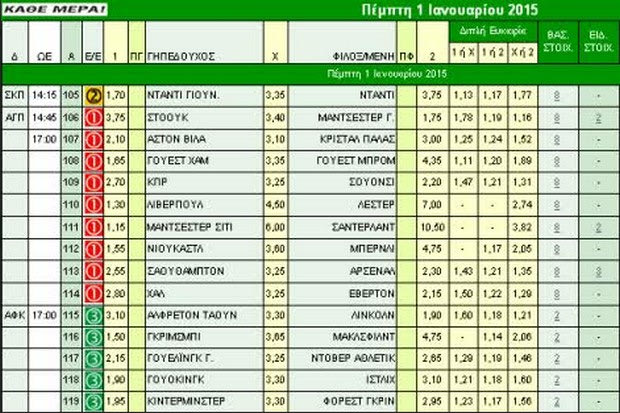 Διαβάστε συνοπτικά στατιστικά, ειδήσεις και εκτιμήσεις για όλα τα παιχνίδια του κουπονιού της Πρωτοχρονιάς.