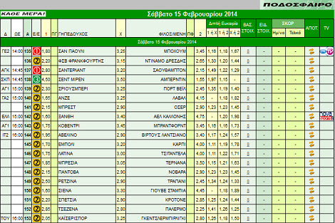 Διαβάστε συνοπτικά στατιστικά, ειδήσεις και εκτιμήσεις για όλα τα παιχνίδια του κουπονιού του Σαββάτου (15/2). Πηγή: Betblog.gr.