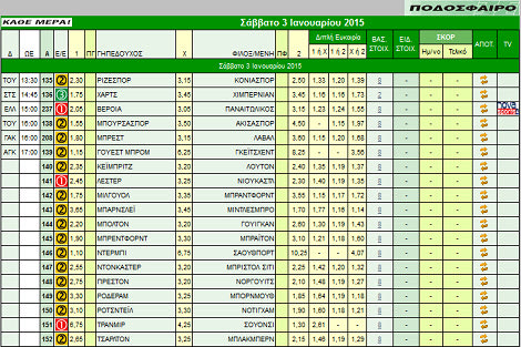 Διαβάστε συνοπτικά στατιστικά, ειδήσεις και εκτιμήσεις για όλα τα παιχνίδια του κουπονιού του Σαββάτου(3/1).