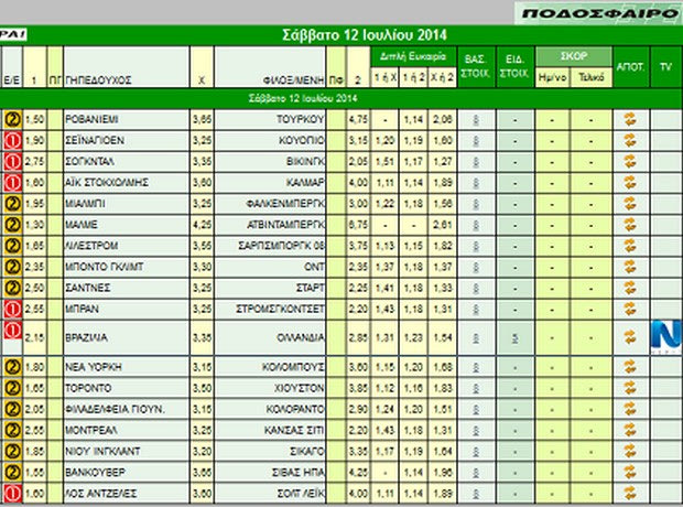 Διαβάστε συνοπτικά στατιστικά, ειδήσεις και εκτιμήσεις για όλα τα παιχνίδια του κουπονιού του Σαββάτου (12/7).