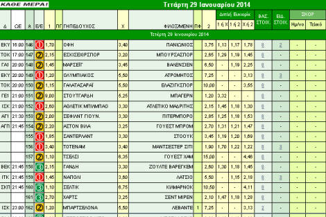 Διαβάστε συνοπτικά στατιστικά, ειδήσεις και εκτιμήσεις για όλα τα παιχνίδια του κουπονιού της Τετάρτης (29/1). Πηγή: Betblog.gr