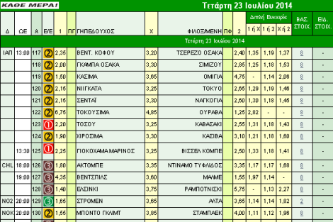 Διαβάστε συνοπτικά στατιστικά, ειδήσεις και εκτιμήσεις για όλα τα παιχνίδια του κουπονιού της Τετάρτης (23/7). Πηγή: Betblog.gr.