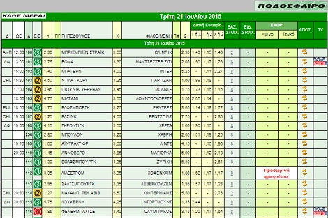 Διαβάστε συνοπτικά στατιστικά, ειδήσεις και εκτιμήσεις για τα πιο σημαντικά παιχνίδια του κουπονιού της Τρίτης (21/7). Πηγή: Betblog.gr.