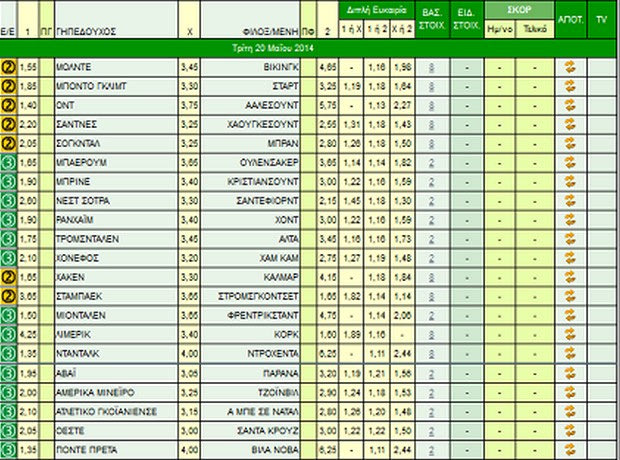Διαβάστε συνοπτικά στατιστικά, ειδήσεις και εκτιμήσεις για όλα τα παιχνίδια του κουπονιού της Τρίτης (20/5). Πηγή: Betblog.gr.