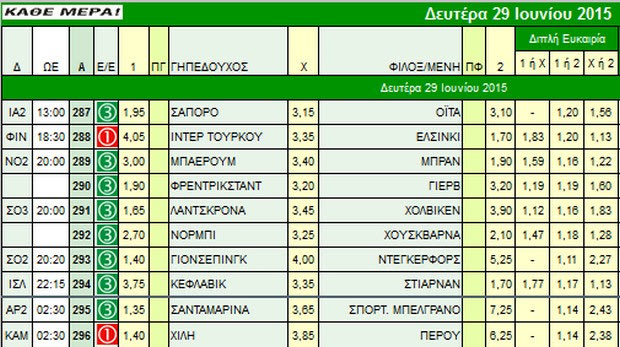 Διαβάστε συνοπτικά στατιστικά, ειδήσεις και εκτιμήσεις για τα πιο σημαντικά παιχνίδια του κουπονιού της Δευτέρας (29/6).