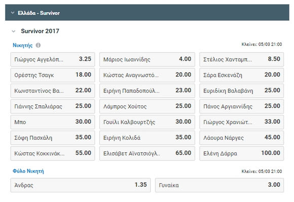 Ο πρώην ποδοσφαιριστής είναι στο 3.25 και ο Κύπριος των Μαχητών στο 4.00, την ώρα που ο τρίτος της παρέας ανέβηκε στο 8.50.