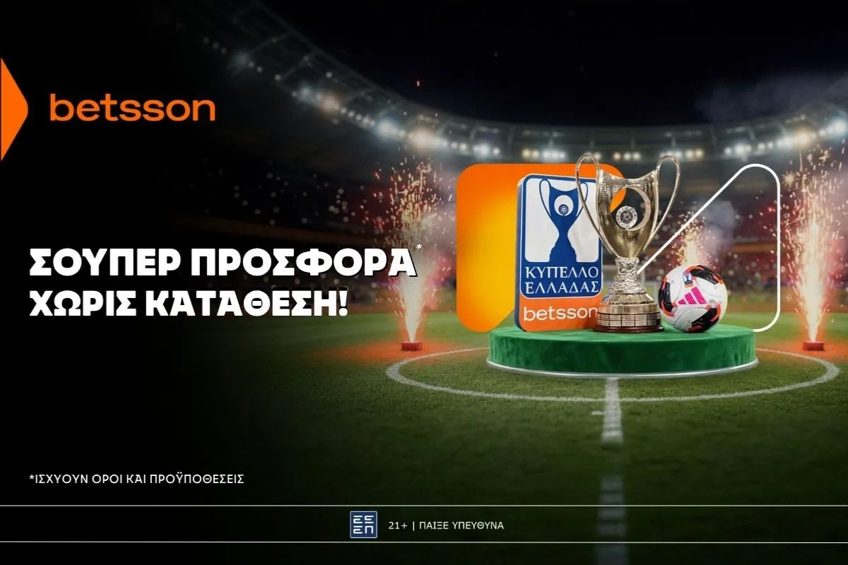 Betsson: Σούπερ προσφορά* χωρίς κατάθεση για το στοίχημα ενόψει του τελικού του Κυπέλλου Ελλάδας Betsson