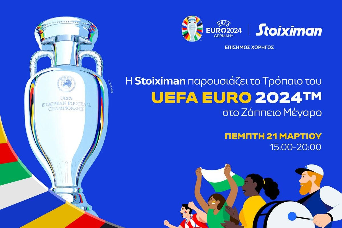 Η Stoiximan, το brand που διαχειρίζεται η Kaizen Gaming, η Επίσημη Παγκόσμια Χορηγός του UEFA EURO 2024™, φέρνει στην Αθήνα το τρόπαιο για το οποίο θα αγωνιστούν 24 εθνικές ομάδες της Γηραιάς Ηπείρου στα γήπεδα της Γερμανίας.
