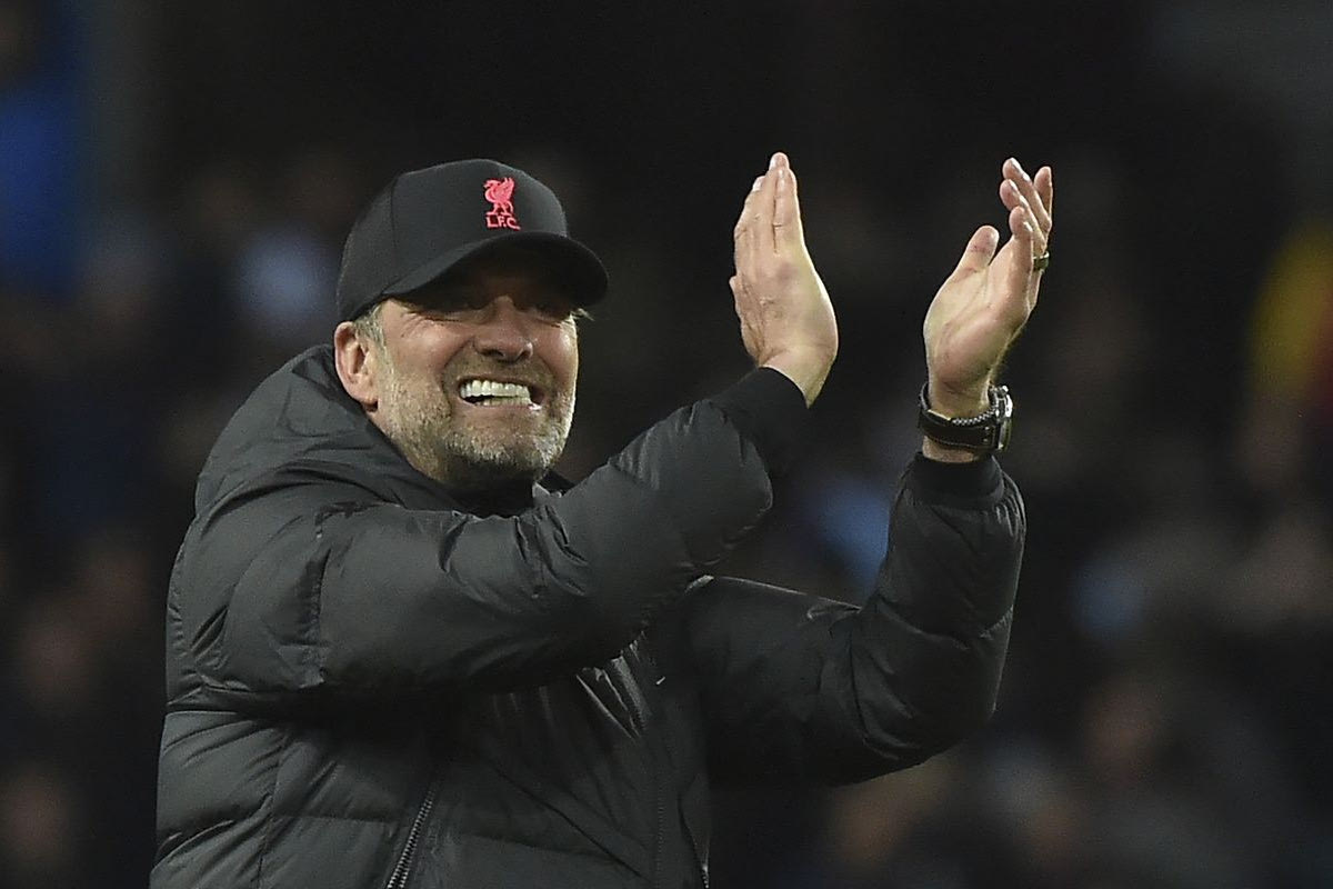 Liverpool's manager Jurgen Klopp applauds after the English Premier League soccer match between Aston Villa and Liverpool at Villa Park in Birmingham, England, Tuesday, May 10, 2022. Liverpool won the game 2-1. (AP Photo/Rui Vieira) AP