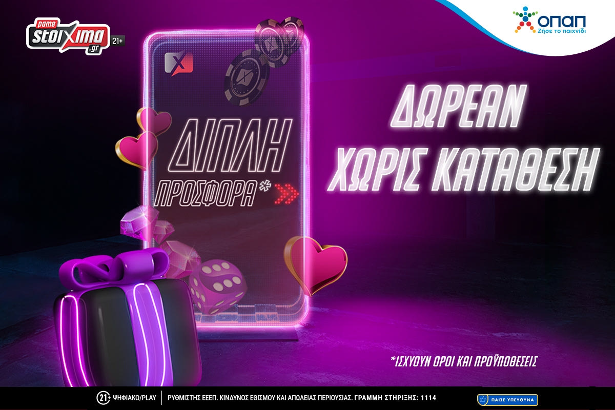 Το Pamestoixima.gr σε υποδέχεται με μεγάλα δώρα. Διπλή προσφορά* χωρίς κατάθεση για όλους για λίγες ημέρες.