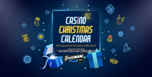 Όπου και αν είσαι, είναι και το Casino σου και αυτές τις γιορτές χάρη στο Stoiximan.gr που έχει ετοιμάσει πολλές εκπλήξεις για να απογειώσει τη διασκέδασή σου! Το Christmas Calendar επιφυλάσσει κάθε μέρα μία ξεχωριστή προσφορά* για όλα τα μέλη έως τη Δευτέρα 6 Ιανουαρίου, την οποία μπορούν να την “ανακαλύψουν” στο stoiximan.gr/christmas-calendar.