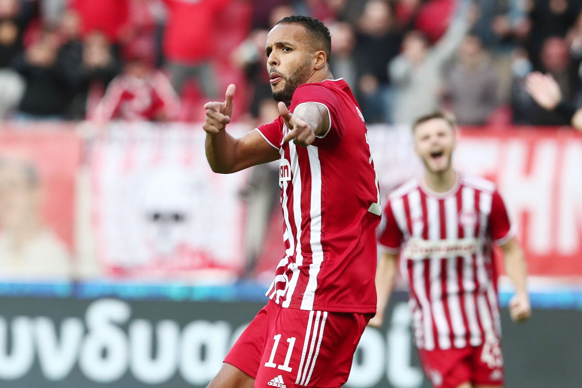 Ο Αραμπί πανηγυρίζει γκολ στη Super League Interwetten INTIME