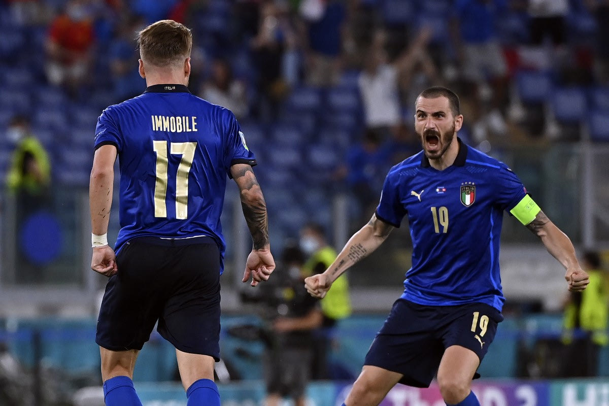 Ο Τσίρο Ιμόμπιλε πανηγυρίζει με τον Λεονάρντο Μπονούτσι © 2021 Andreas Solaro/Pool Photo via Associated Press