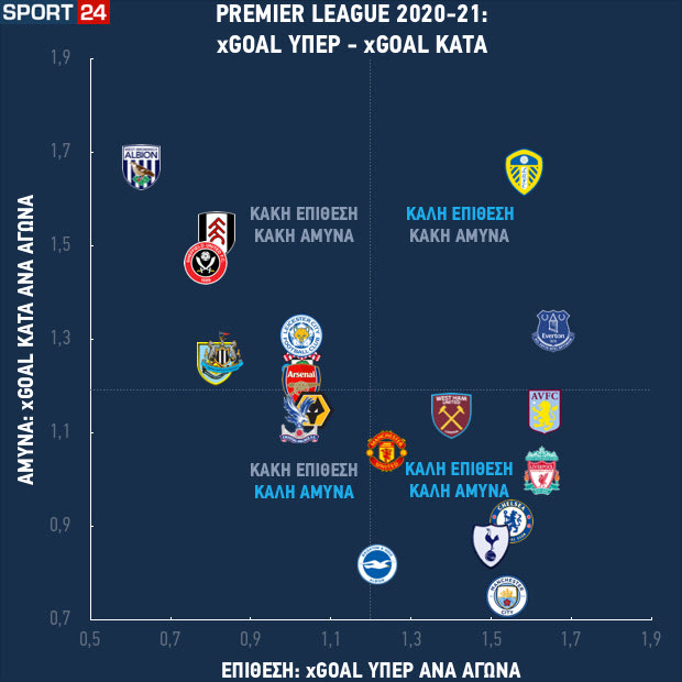 Ρίξτε άλλη μια ματιά στο γράφημα των expected goals. Δείτε πόσο μέτρια είναι η εικόνα της Λέστερ που είναι 4η και πόσο εξαιρετική είναι η εικόνα της Μπράιτον που είναι 12η.