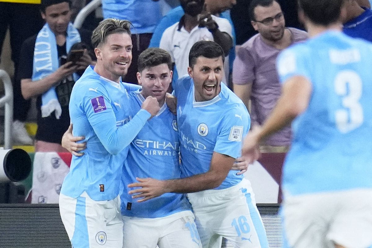 Ο Χούλιαν Άλβαρες πανηγυρίζει το γκολ κόντρα στη Φλουμινένσε
