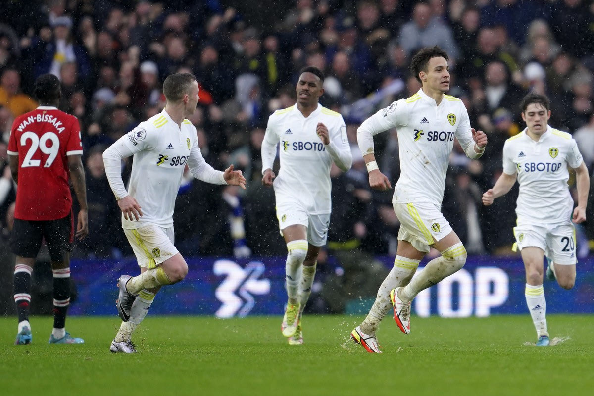 Οι παίκτες της Λιντς πανηγυρίζουν το γκολ επί της Μάντσεστερ Γιουνάιτεντ | 20 Φεβρουαρίου 2022 © 2022 AP IMAGES/Jon Super