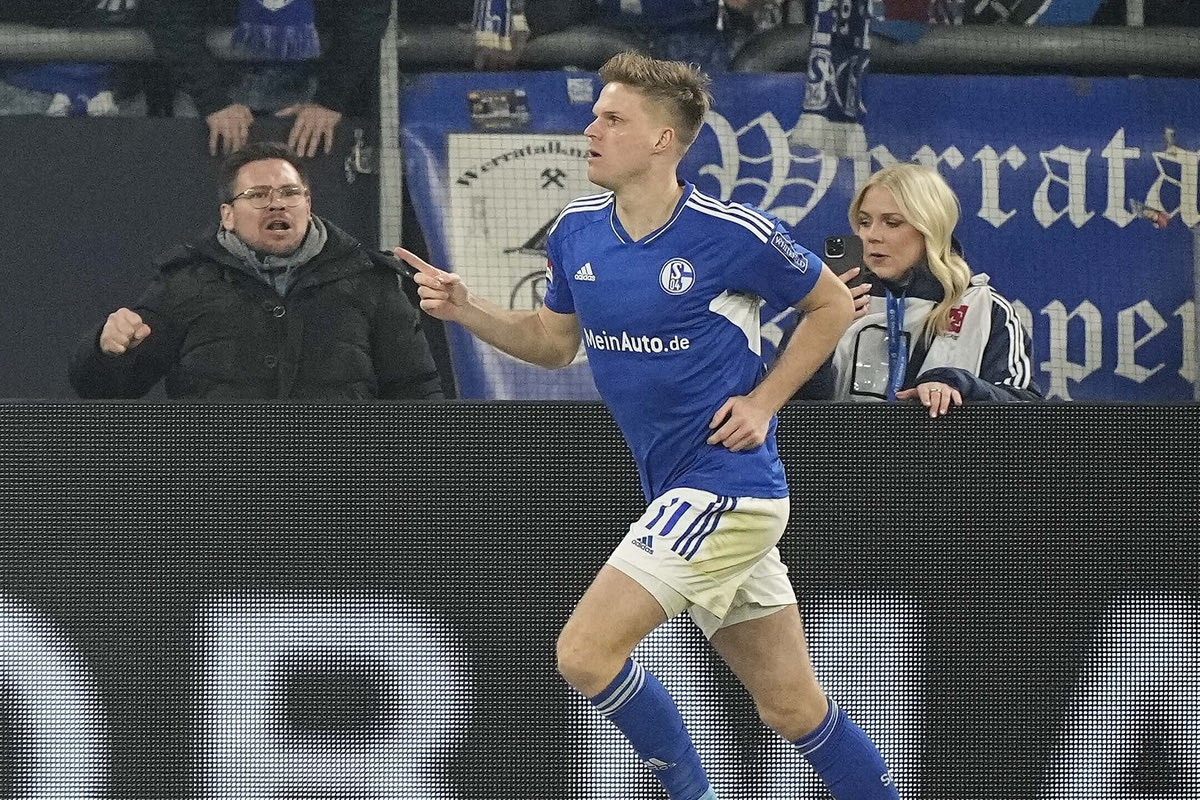 Ο Μάριους Μπούλτερ πανηγυρίζει γκολ του στο Σάλκε - Ντόρτμουντ 2023 AP Photo/Martin Meissner