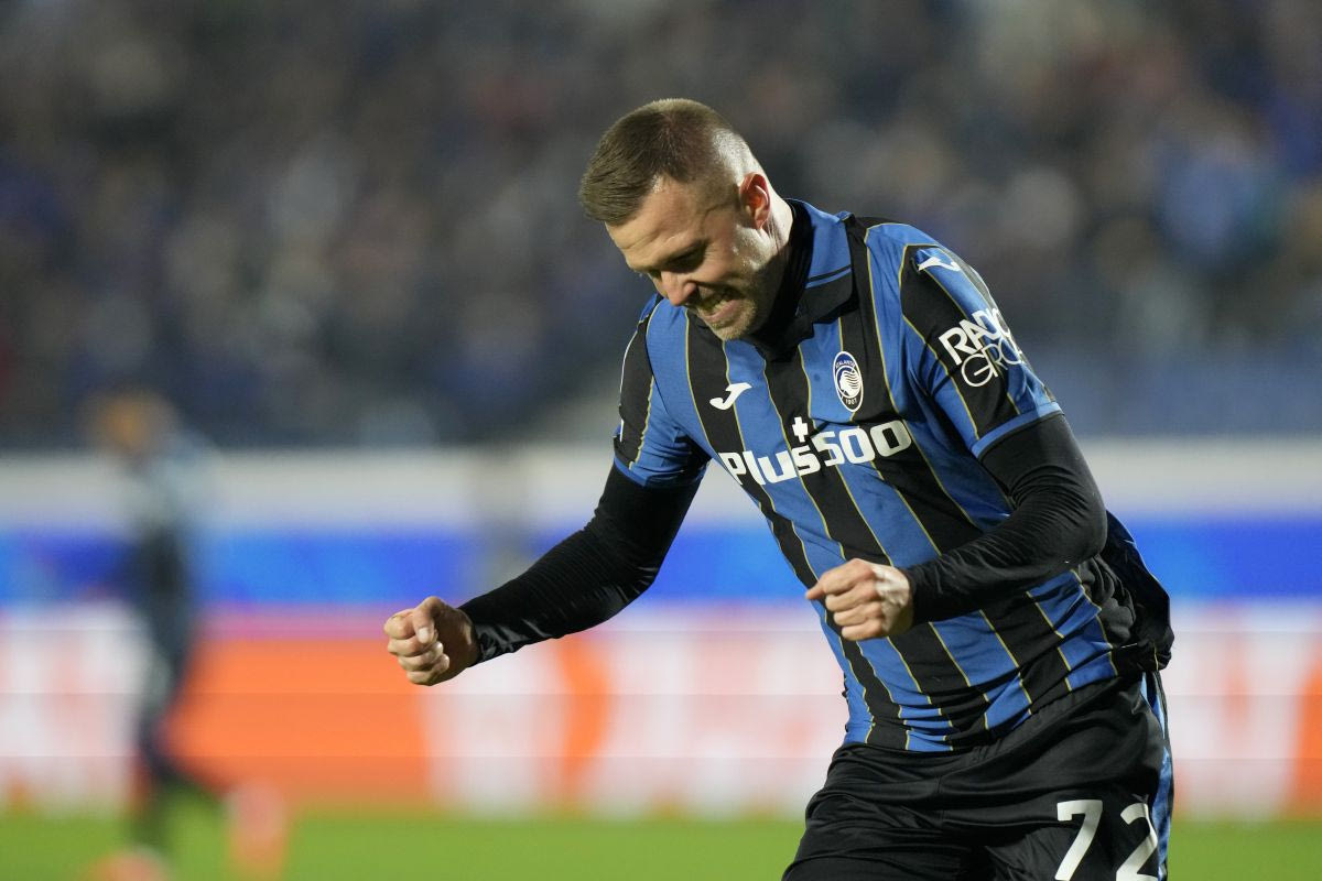Ο άσος της Αταλάντα Γιόσιπ Ιλιτσιτς πανηγυρίζει το γκολ του κόντρα στη Μάντσεστερ Γιουνάιτεντ © 2021 LUCA BRUNO/ASSOCIATED PRESS