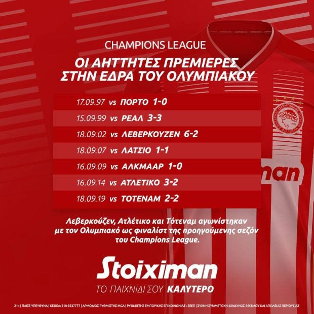 Θα ξεκινήσει με βαθμό ή βαθμούς ο Ολυμπιακός; Η πρεμιέρα του στο Champions League παίζει στη Stoiximan με 500+ στοιχήματα, νέα ειδικά παικτών, σούπερ προσφορά* & FANTASY τουρνουά.