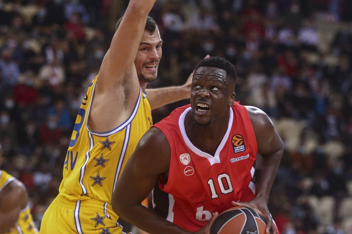 Ο Μουστάφα Φαλ με τον Άντε Ζίζιτς σε αγώνα Ολυμπιακός - Μακάμπι Intime