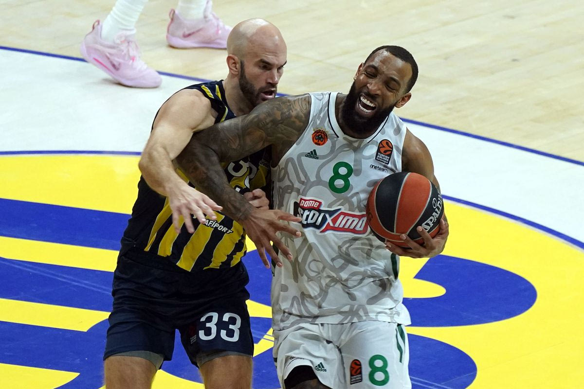 Ο Νικ Καλάθης μαρκάρει τον Ντέρικ Γουίλιαμς στο παιχνίδι του Παναθηναϊκού με τη Φενέρμπαχτσε στην Κωνσταντινούπολη INTIME