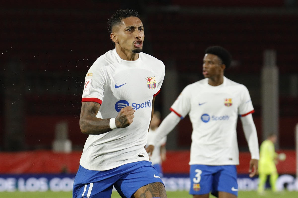 Ο Ραφίνια πανηγυρίζει με τη φανέλα της Μπαρτσελόνα απέναντι στην Μαγιόρκα | 26 Σεπτεμβρίου 2023 @2023 Francisco Ubilla/AP IMAGES