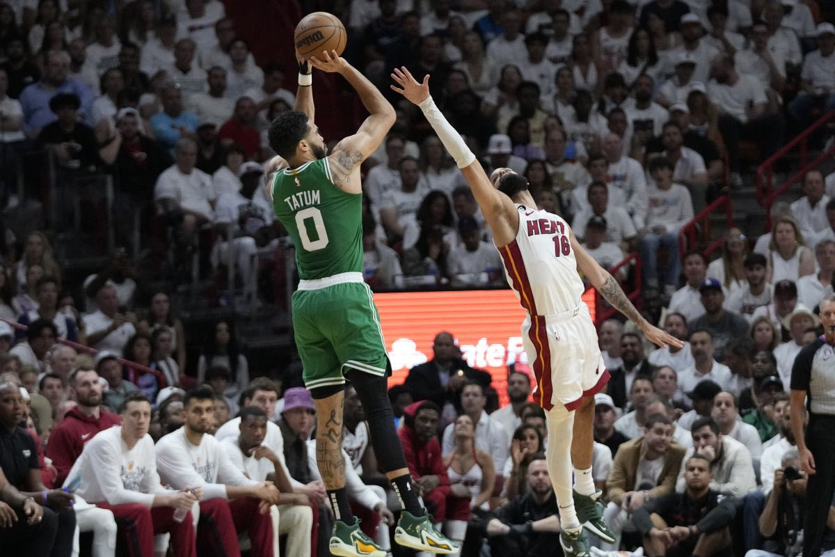 Το Μαϊάμι έλεγξε το Game 4 στο πρώτο ημίχρονο (56-50), όμως η Βοστώνη άγγιξε το τέλειο στην τρίτη περίοδο και με επί μέρους σκορ 38-23 έβαλε τις βάσεις για το διπλό. Τη μεγάλη διαφορά έκανε ο Τζέισον Τέιτουμ, ο οποίος σημείωσε 33 πόντους, εκ των οποίων οι 25 στο δεύτερο ημίχρονο, όπου είχε 11/15 σουτ! Ειδικά στην τρίτη περίοδο, ο ηγέτης των Σέλτικς πέτυχε 14 πόντους.