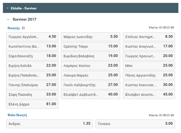 Ο Γιώργος Αγγελόπουλος είναι το ξεκάθαρο φαβορί για τον νικητή του Survivor. Δείτε αναλυτικά όλες τις αποδόσεις για τους 22 παίκτες.