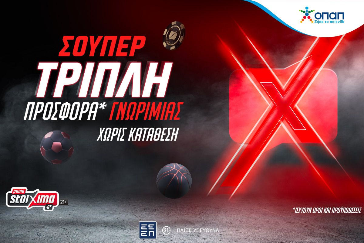 Τριπλή προσφορά* δωρεάν χωρίς κατάθεση από το Pamestoixima.gr