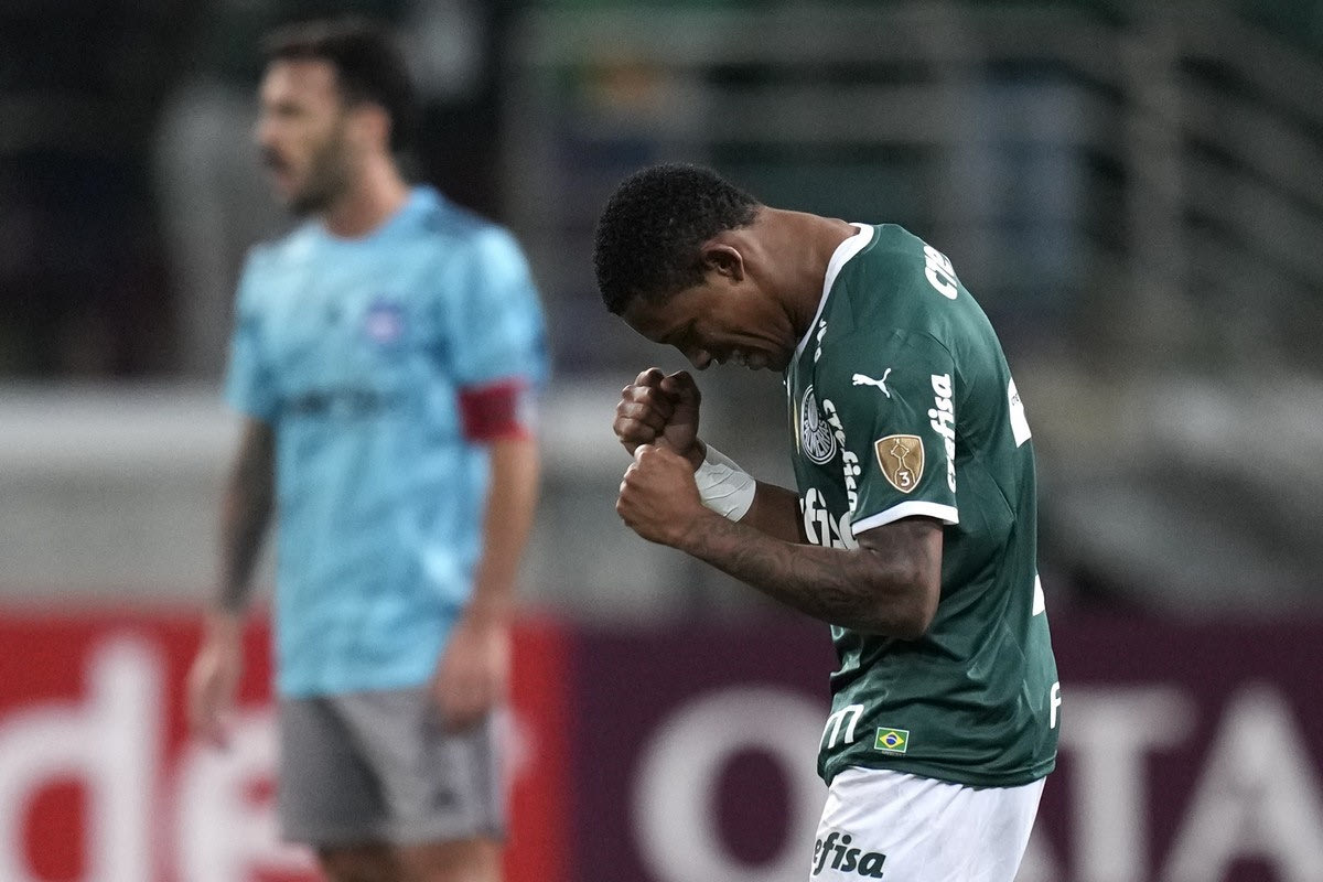 Ο Ντανίλο της Παλμέιρας πανηγυρίζει γκολ κόντρα στην Έμελεκ στο Copa Libertadores © 2022 Andre Penner/Associated Press