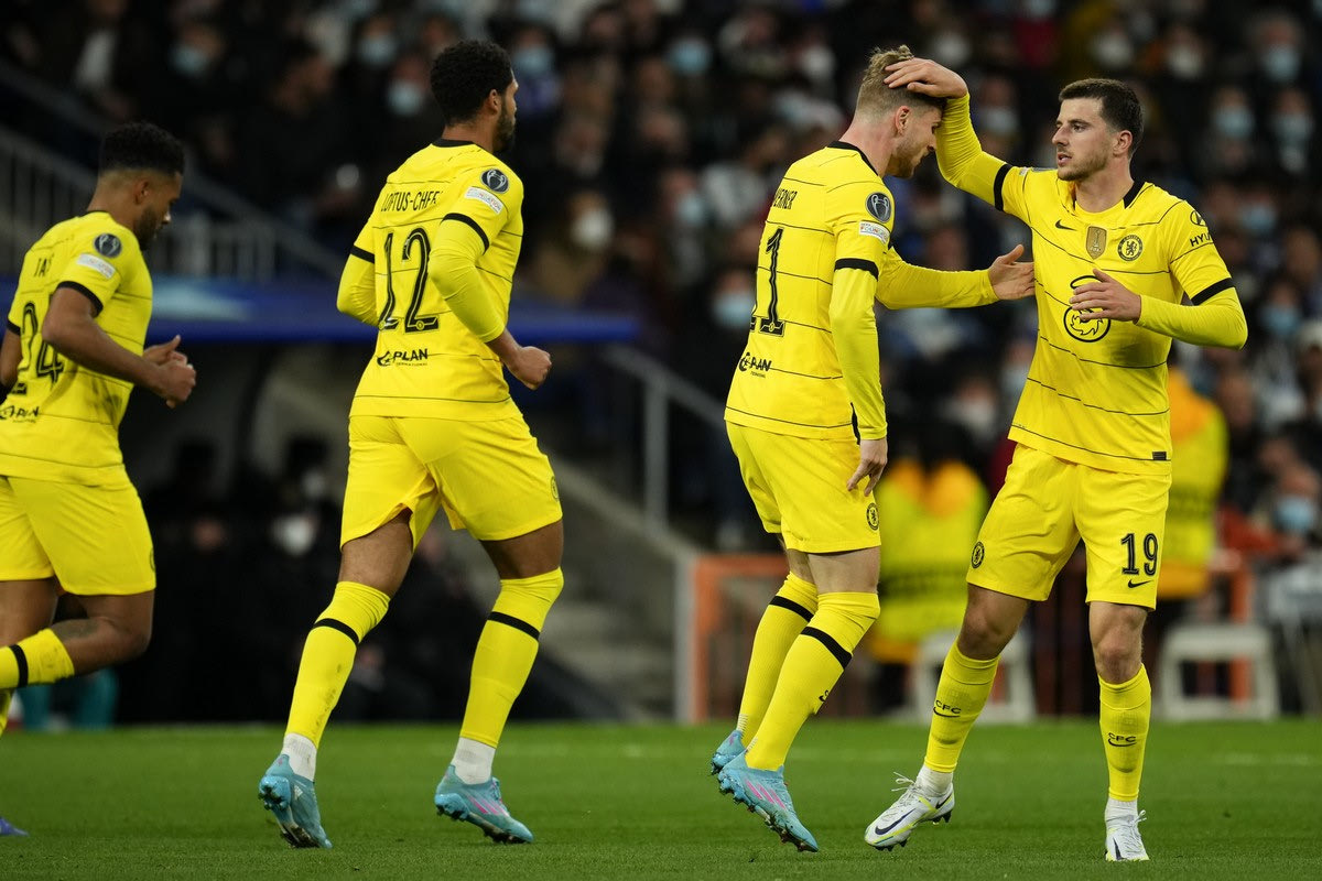 Οι παίκτες της Τσέλσι πανηγυρίζουν γκολ κόντρα στην Ρεάλ στο Μπερναμπέου | 12 Απριλίου 2022 @2022 Manu Fernandez/AP IMAGES